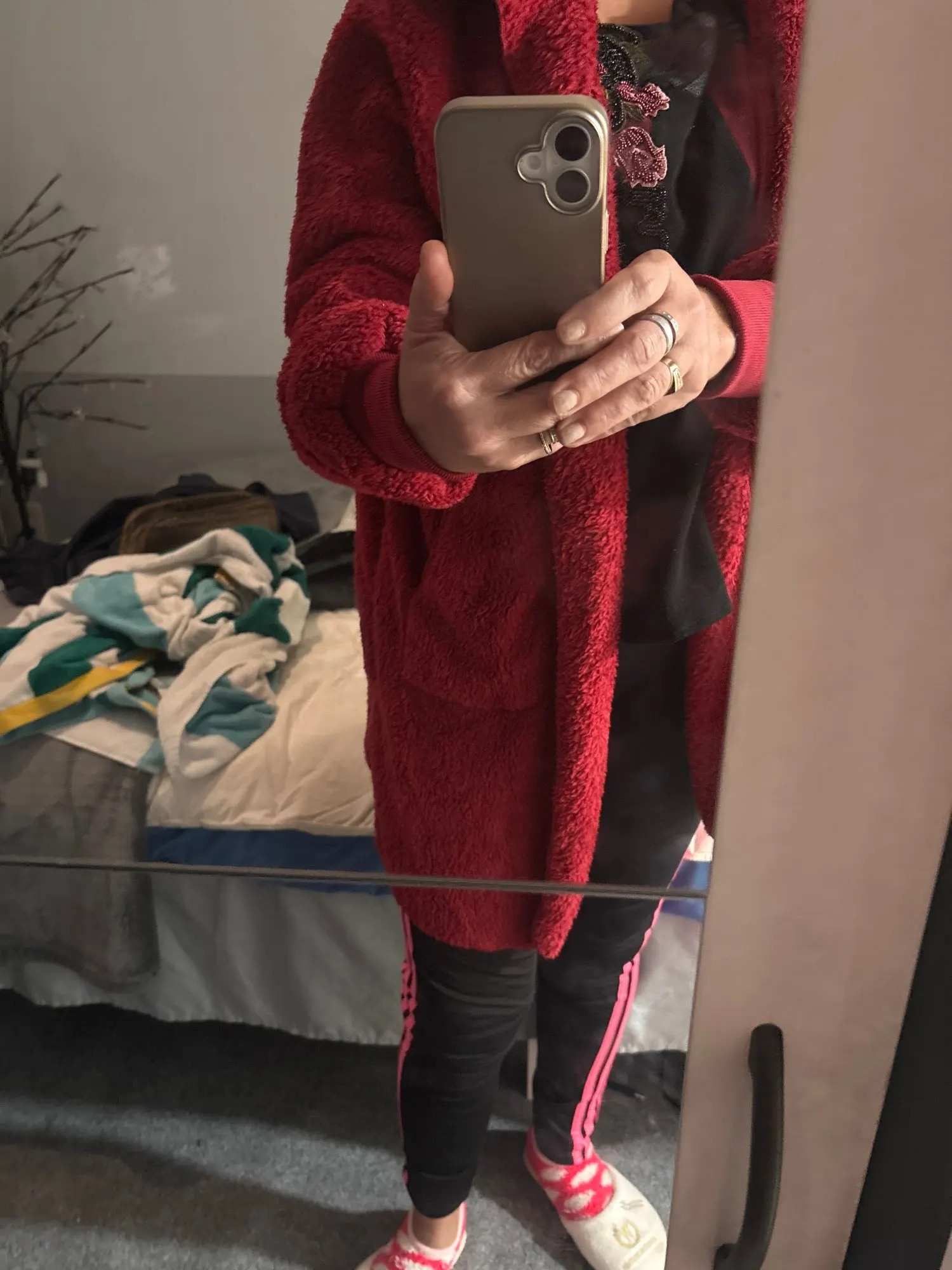 Double-fleece interior and exterior provide plush warmth and texture.